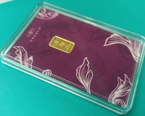 - Bar emas dalam pelbagai saiz, antara 0.1 gram hingga 1 kilogram.