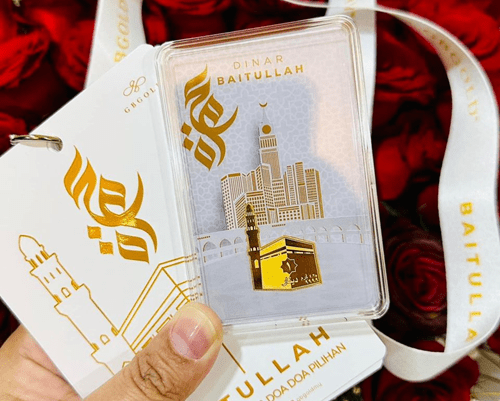 - Syiling dinar, bentuk mata wang emas tradisional Islam, tersedia dalam berat yang berbeza.